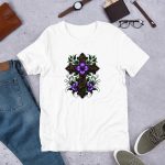 Religious Cross, Vines, Leaves and Purple Flowers – Cross of Jesus Art – T-Shirt Gift Unisex t-shirt