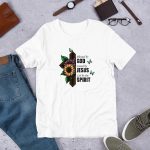 Blessed by God, Loved by Jesus, Led by the Spirit – Cross with vines, flowers and text. Religious T-shirt gift – Unisex t-shirt
