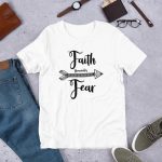 Faith Dominates Fear – Text with Tribal Arrow in the center – Religious T-Shirt – Gift – Unisex t-shirt